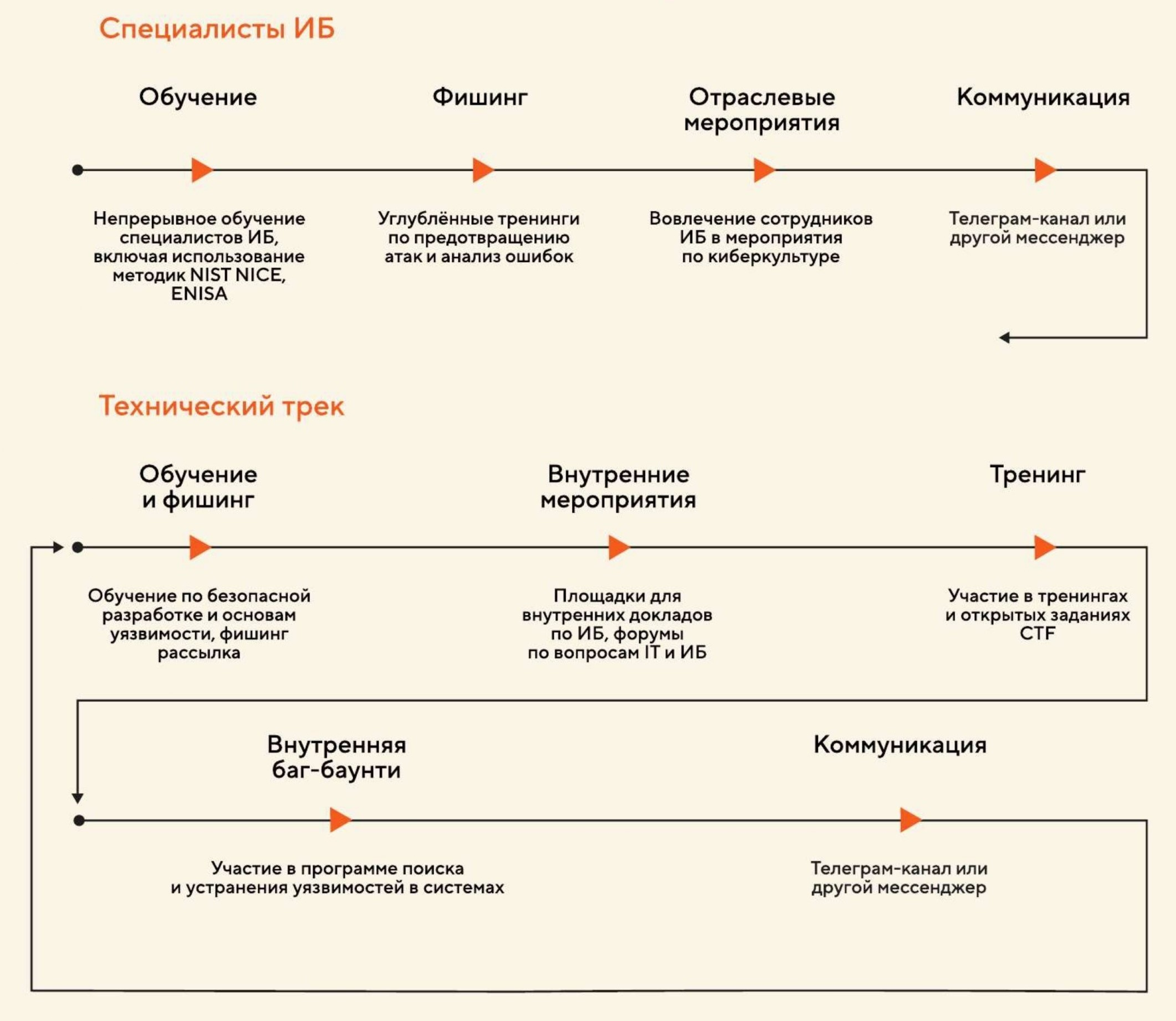 В зрелой киберкультуре треки обучения топ-менеджеров и рядовых сотрудников, например, могут выглядеть так ↓